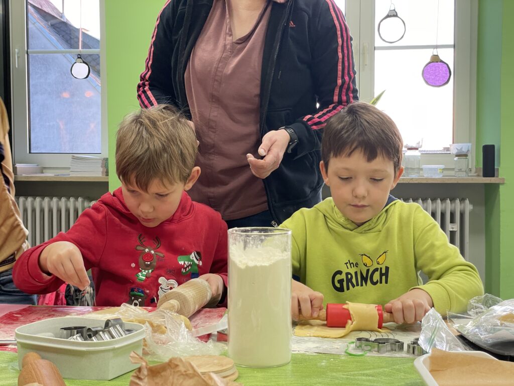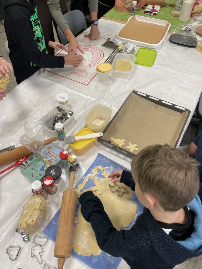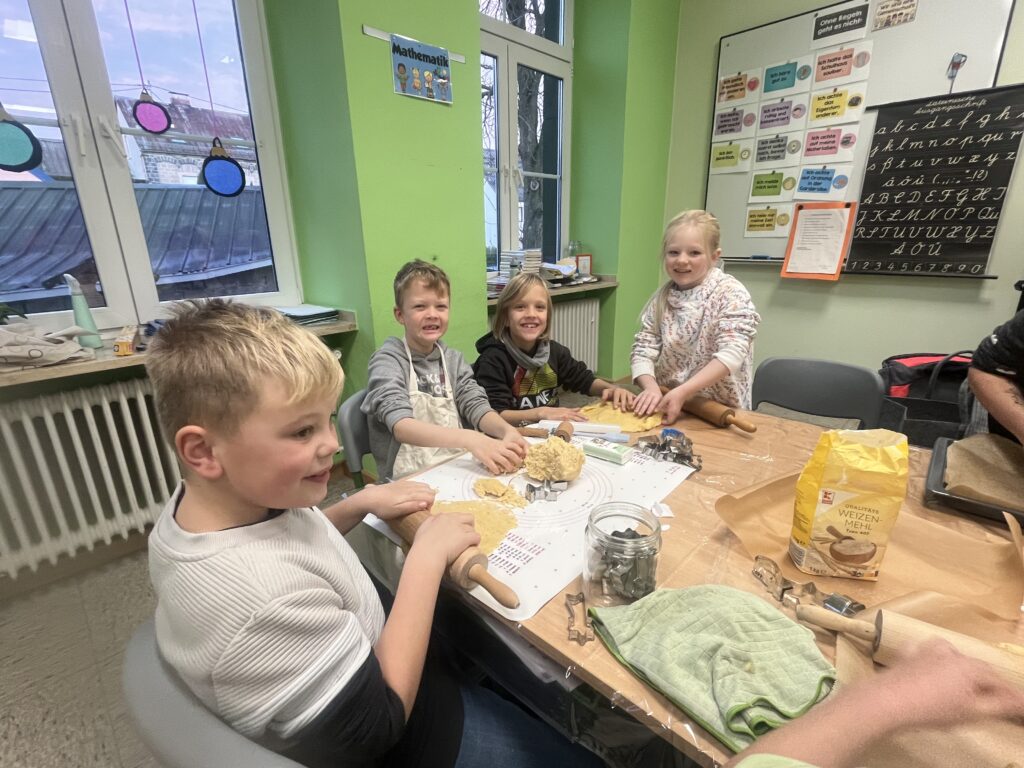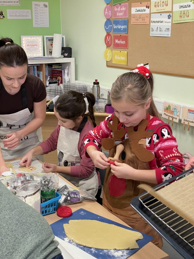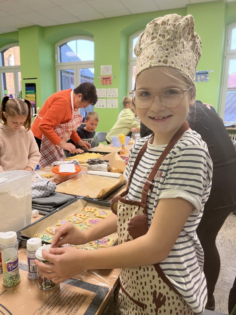 In unserer Grundschule wurde es Ende November herrlich weihnachtlich: einige Klassen trafen sich gemeinsam mit Eltern und Großeltern zum traditionellen Plätzchenbacken. In der Schule wurde fleißig Teig ausgerollt, Plätzchen ausgestochen und kreativ verziert. Für die Backaktion nutzen wir neben einzelner Klassenräume auch das Gemeindehaus und die dortige Küche.