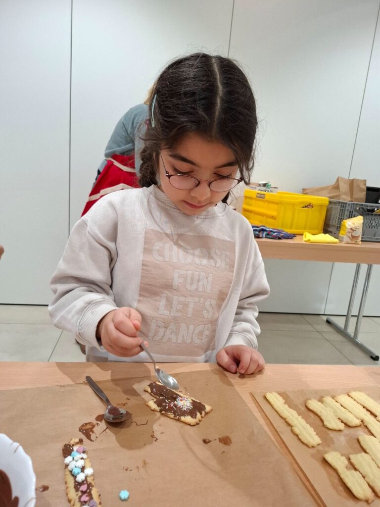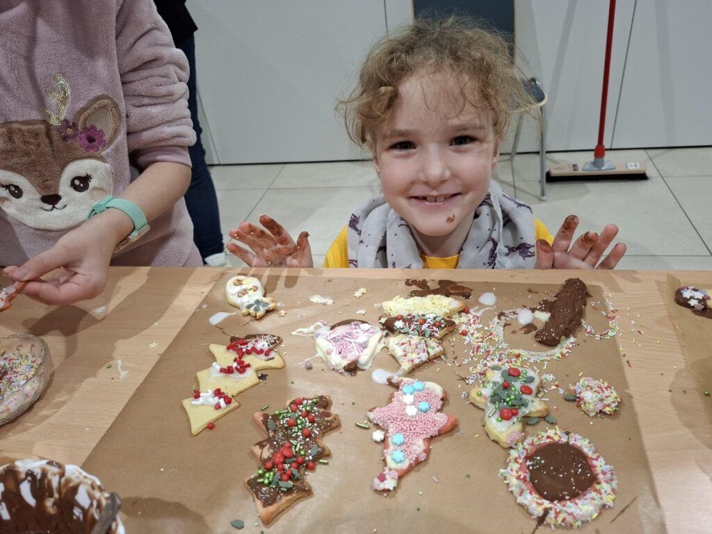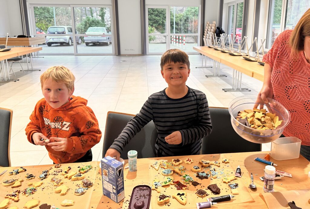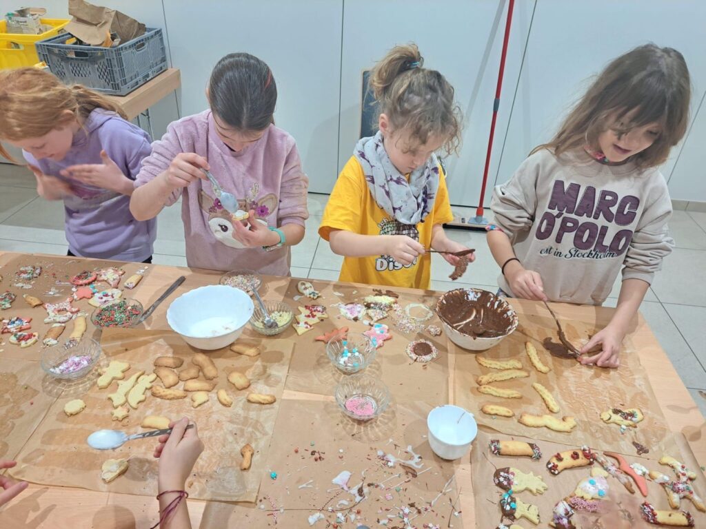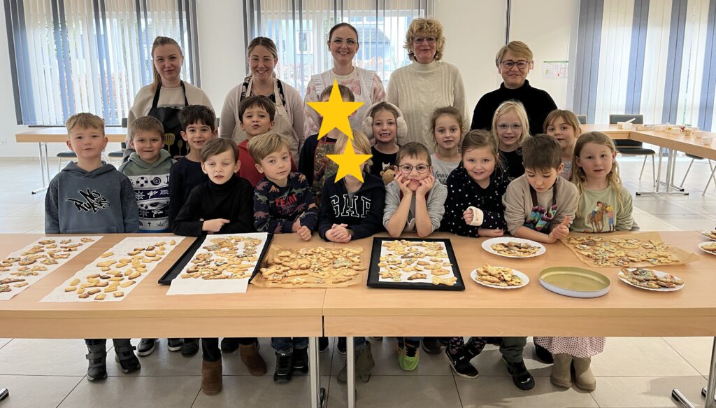In unserer Grundschule wurde es Ende November herrlich weihnachtlich: einige Klassen trafen sich gemeinsam mit Eltern und Großeltern zum traditionellen Plätzchenbacken. In der Schule wurde fleißig Teig ausgerollt, Plätzchen ausgestochen und kreativ verziert. Für die Backaktion nutzen wir neben einzelner Klassenräume auch das Gemeindehaus und die dortige Küche.